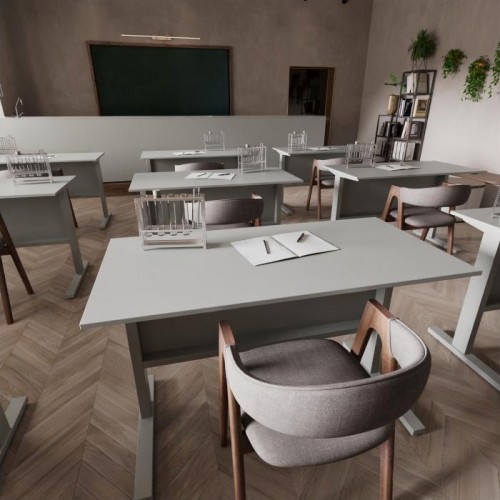 Сборно-разборный металлический каркас с полимерным покрытием серого цвета и столешница, способная выдержать до 200 кг распределенной нагрузки, делают С-У идеальным выбором для любого учебного пространства.