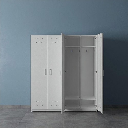 Шкаф шириной 800 мм имеет две дверки, полку и штангу для вешалок. Шкаф шириной 400 мм (только из ЛДСП) имеет одну дверку, полку и штангу для вешалок. Устанавливается на металлический сборно-разборный каркас с полимерным покрытием серого цвета. В каркасе предусмотрены регулируемые опоры в диапазоне 0-30 мм для компенсации неровностей пола. Шкаф из ЛДСП имеет одно общее отделение, шкаф из стали - два.