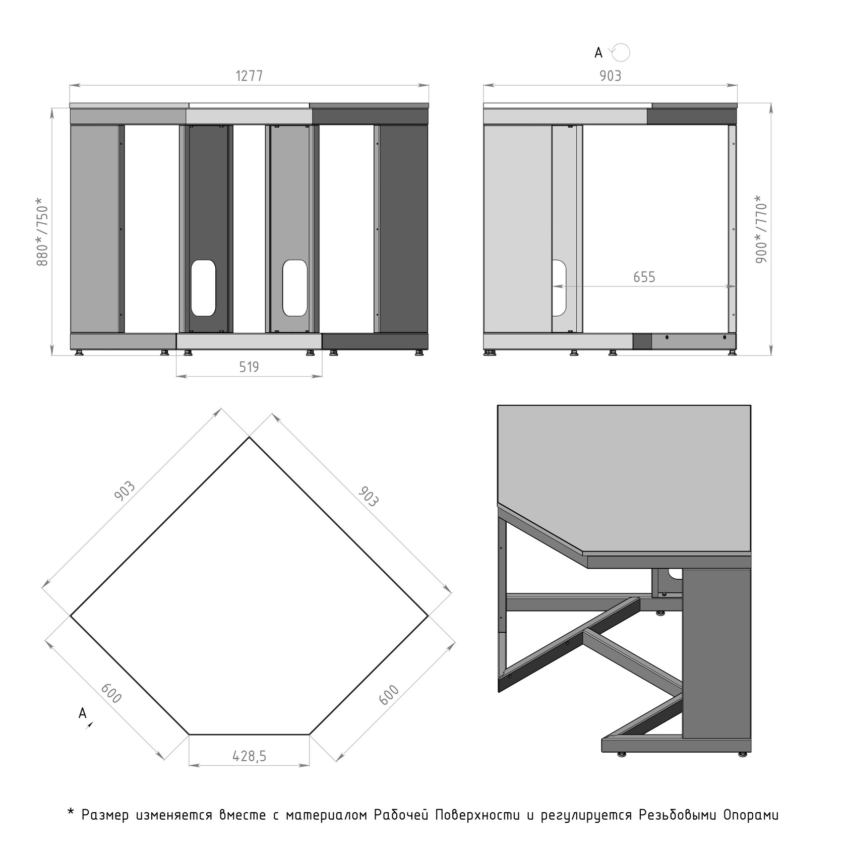 - Рабочая поверхность - столешница (материал – на выбор)