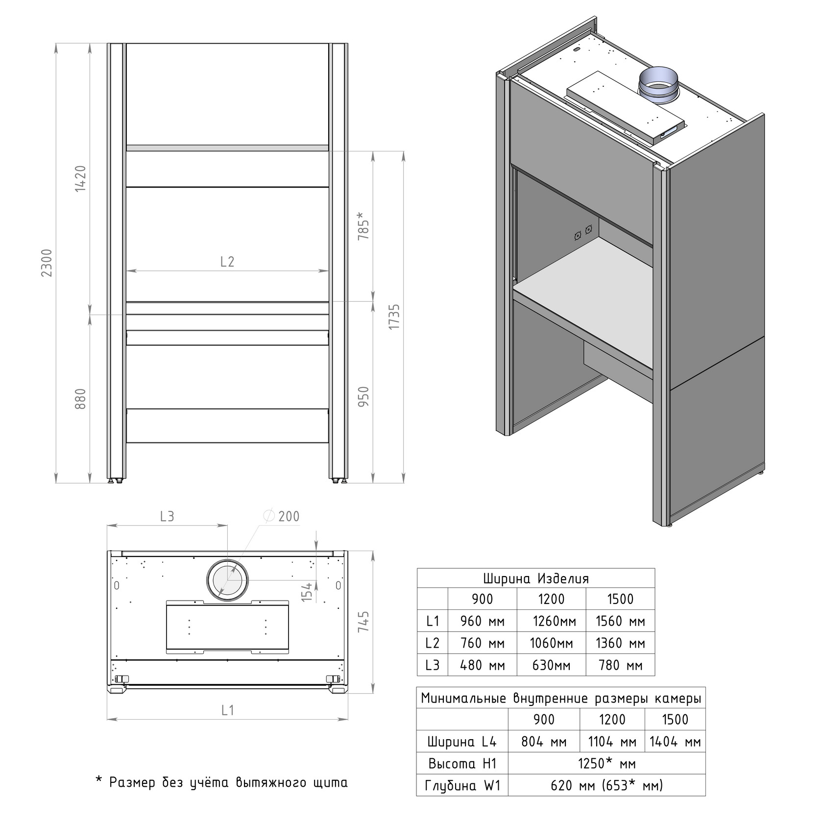 Шкаф вытяжной для муфельных печей ЛК-1500 ШВМ, ЛК ШВМ, Вытяжные шкафы
