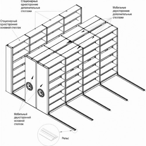 *** Стоимость стеллажа указана без рельсовой системы