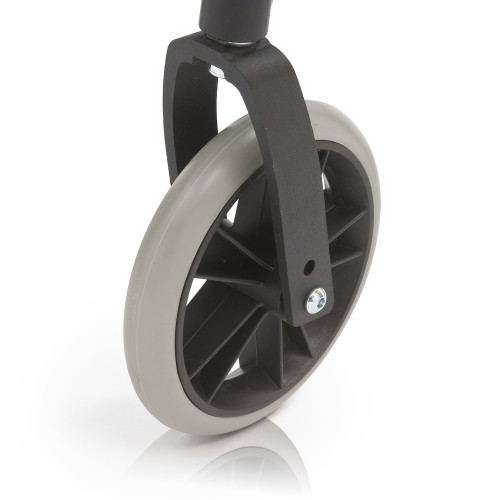 Кресло-коляска оснащена колесами, имеющими задние пневматические и передние цельнолитые шины.